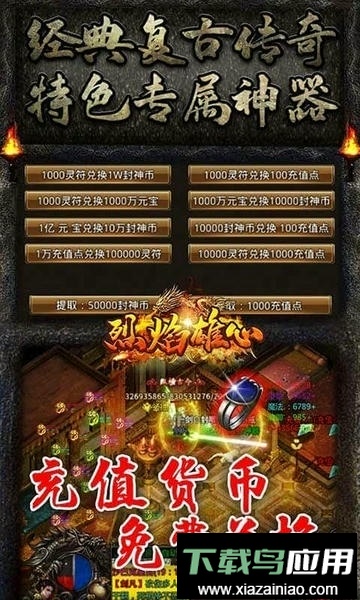 怪物固定掉落充值点,充值点可免费兑换充值货币,创建角色还赠送极限攻速。
