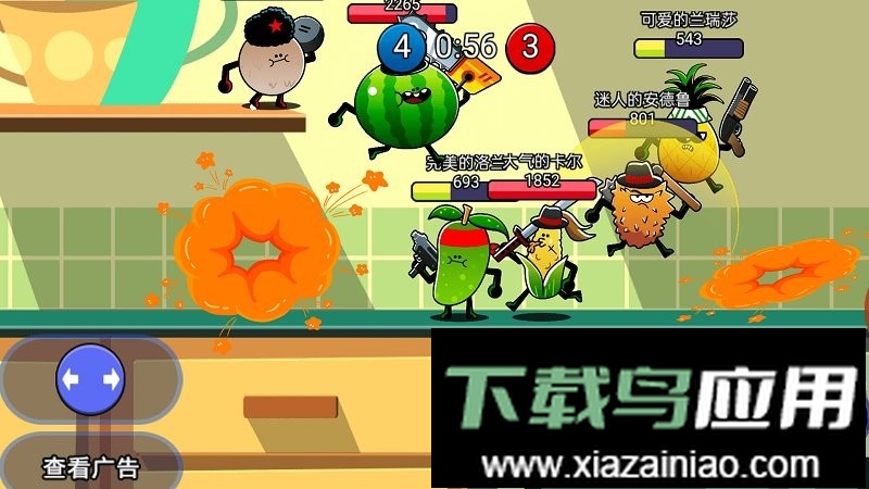 这款游戏主打快节奏的射击竞技,玩家将扮演造型呆萌的水果蔬菜角色,使用手中的武器在限定时间内击败对手;击败次数更多的一方将获得胜利。游戏简化了传统竞技游戏复杂的操作,上手十分容易;同时结合了卡牌收集与养成体系,玩家可以通过抽取获得更高阶的角色,并对其进行强化,从而提升整体属性和战斗能力。