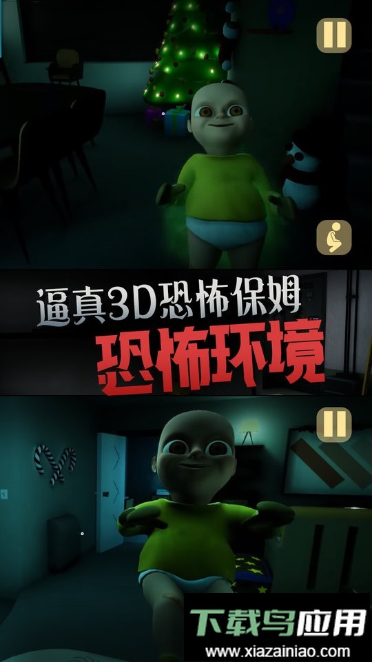 2、音效设计惊悚,画面氛围诡异,屋内环境令人毛骨悚然,玩家需与黄衣宝宝周旋对抗。