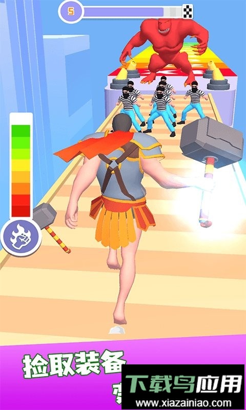 这是一款卡通趣味的跑酷闯关游戏;玩家从一名基础角色开始,梦想成为强大的猛男。在奔跑过程中,你需要持续锻炼自己的力量,获取更多装备与道具,以此拥有更强的战斗力,击败沿途出现的怪物,证明自己的实力,快乐地突破各个关卡。