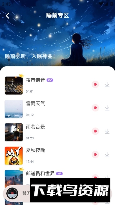 2.离线收听:支持将音乐下载至本地,即使没有网络也能随时播放。