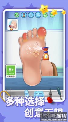 这是一款围绕足部保养展开的趣味游戏,内含大量精心设计的关卡。操作过程伴有清晰提示,上手轻松简单,让你在享受游戏欢乐的同时,还能了解到一些实用的小知识,现在就开启你的体验吧!