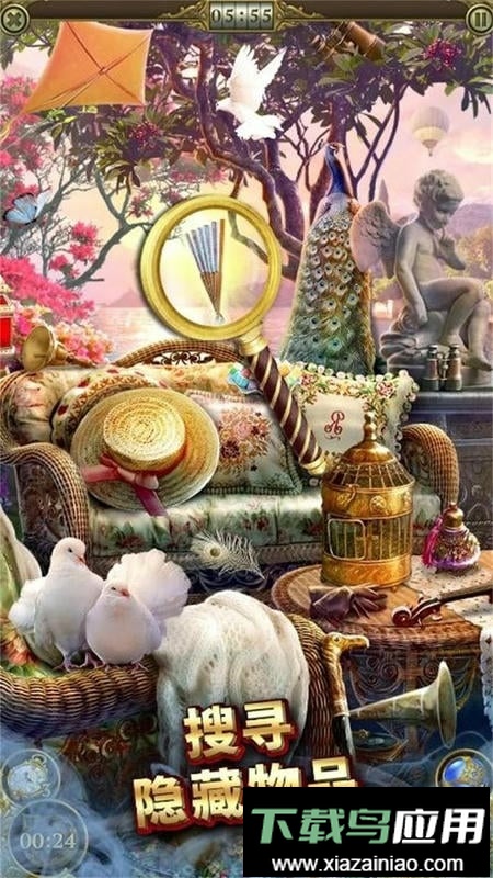 3、右侧列表提示需寻找五件物品:电话、双筒望远镜、小提琴、风笛、鸟笼;