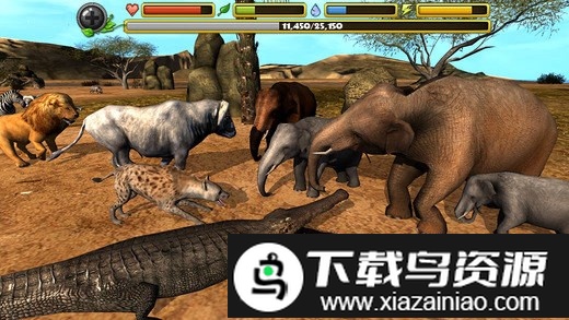 3. 通过战斗与进食提升大象能力,对抗其他野生动物可获得分数并增强生命值,不断升级你的模拟角色。