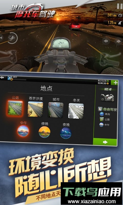 1、完成各类任务后,可解锁并更换更多型号的摩托车;