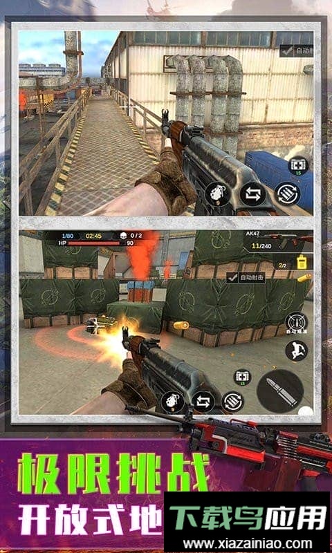 本作是一款第一人称视角射击游戏,核心目标是歼灭所有出现的敌人。玩家可以自由挑选自己擅长的武器投入战斗。通过滑动屏幕左下角的虚拟摇杆控制角色移动,当准星对准敌人时武器会自动开火攻击。在与敌人交火过程中,巧妙利用地形优势能帮助你掌握更多主动权。