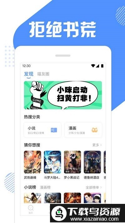1、界面简洁舒适的阅读工具,支持在线快速搜索,提供百万小说与漫画;