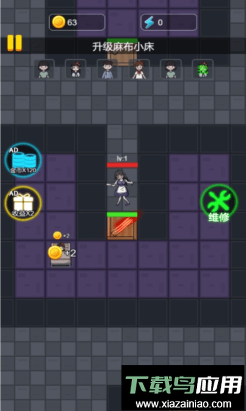 在游戏里,玩家必须避开猛鬼的追捕,找到合适的宿舍藏身并发展经济,建造炮台进行防御。你只能在房间的空地板上进行建造,点击空地即可打开建筑菜单。需要根据当前经济状况选择建造项目,摸索出适合自己的发展路线。将鬼击败或成功坚守到天亮即可获胜,反之若被鬼抓住则宣告失败。这里不仅有躲避追踪的紧张感,还能运用丰富的塔防策略和道具,确保自己的安全,是一款值得体验的塔防战略游戏。