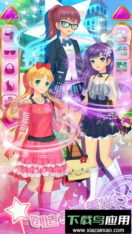 欢迎来到明星少女舞会,这里有多位美丽的二次元少女等待你的装扮;你可以为她们挑选各式靓丽衣裙,自由搭配出心仪造型,尽情展现个性审美与搭配创意。
