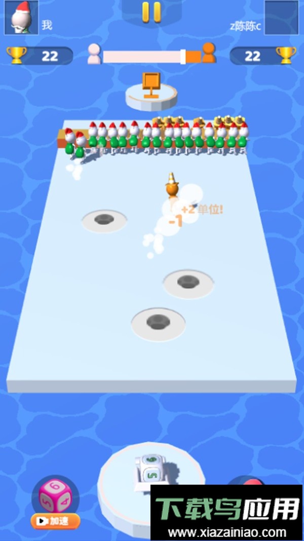 这款小游戏以经典的骰子玩法为核心。玩家通过投掷骰子获得点数,系统会根据点数生成相应数量的小人;小人越多意味着团队力量越大,也就更容易在对抗中占据优势。