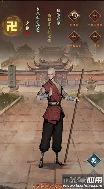 少林武功向来以大开大合著称,招式刚猛无俦;虽然攻击速度偏慢,但单次伤害极高,是江湖中刚猛路线的代表。