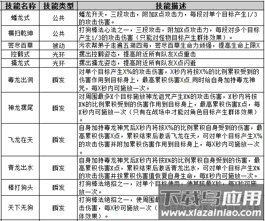 清风寨:绿林侠盗,特技十面埋伏,使用单刀;特点为输出能力强,擅长制造大量伤害。
