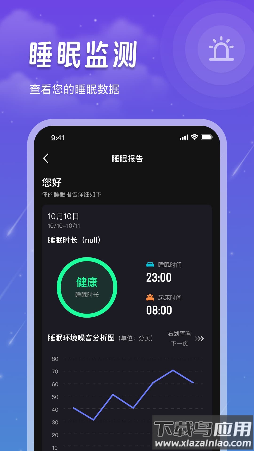 3、睡眠报告:完整记录梦话与呼噜声,支持一键分享。