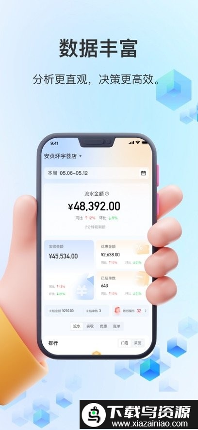 结算侠商户助手安卓版是专为餐饮行业设计的移动管理工具,与配套POS系统协同工作,帮助商家高效运营门店。通过该应用,用户可以实时掌握每日营收状况,并支持同时对多家分店进行统一管理;方便商家随时调整经营策略,提升运营效率,喜欢的就在本站下载。