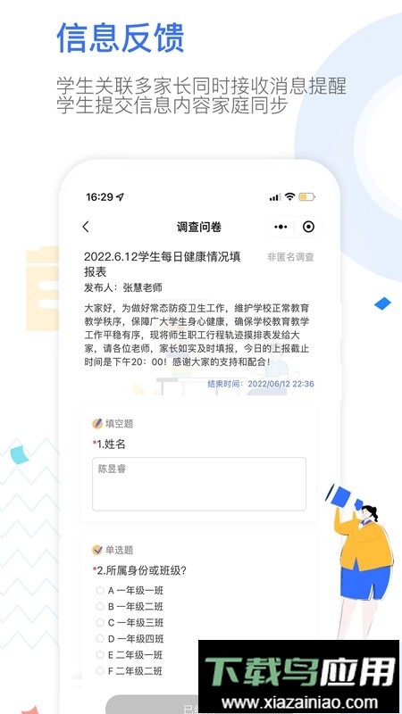 及时接收并查阅学校发布的各项通知,同时可直接通过手机提交孩子的请假申请;