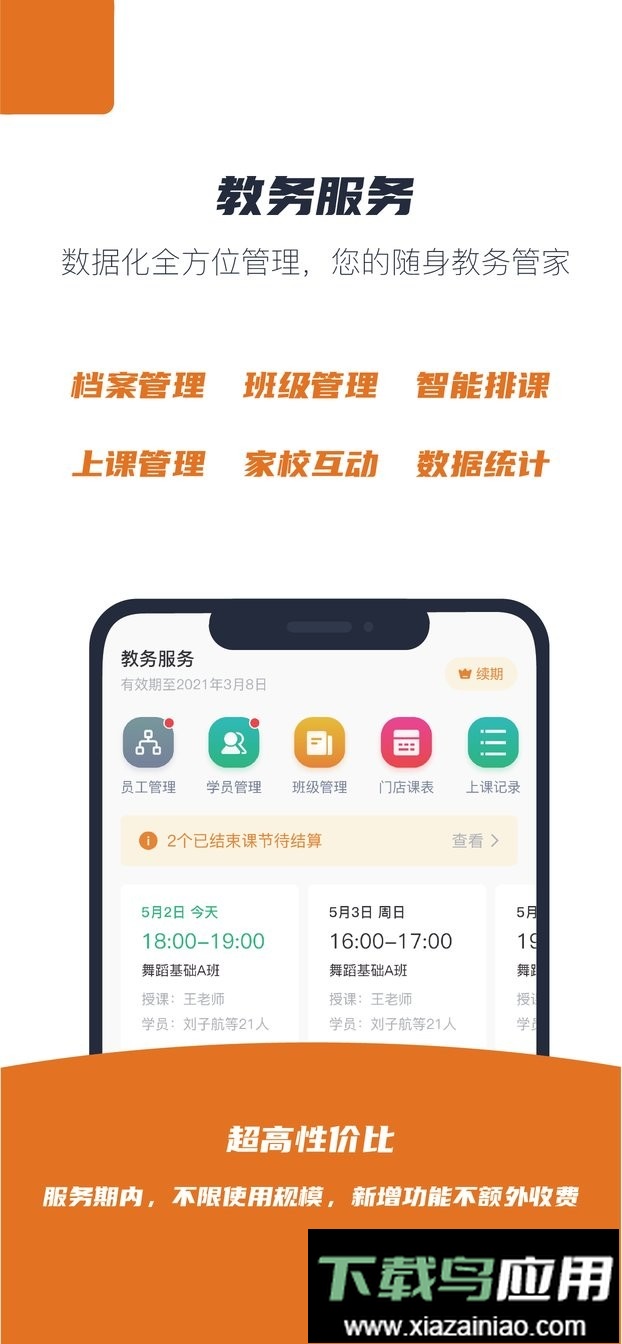 智能考勤:一键完成上课考勤,支持课前提醒与课时结算通知;