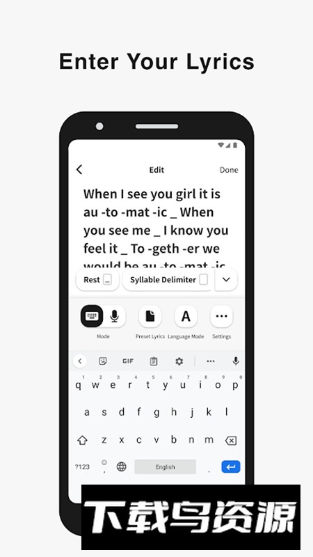 1、在乐句编辑模式下,歌词的播放节奏是通过为每个音节分配音符时值并加入休止符来控制的;