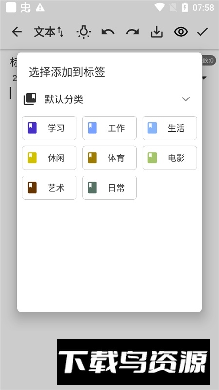 1.在创建笔记时即可选择分类标签,便于日后按类别进行查找与复习。