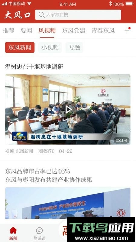 该应用是东风公司打造的移动端融媒体新平台,集新闻资讯、员工服务等功能于一体,形成“新闻+服务+商务”的移动门户,成为公司宣传与信息传递的核心阵地。
