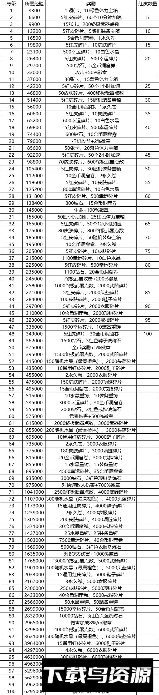 6. 成长之路最高等级为一百级,具体奖励与经验如下;获取摇滚巨星红皮需充值三万五千元,达到最高等级需充值六十多万元。
