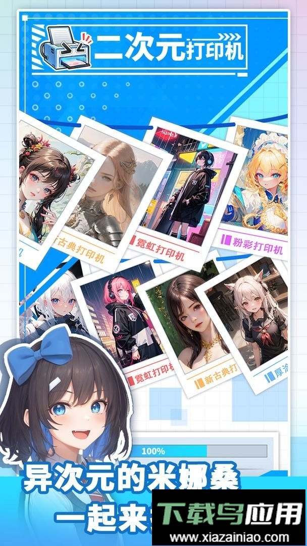 二次元打印机免广告版是一款充满趣味的综合壁纸生成工具,用户能够导入喜爱的二次元角色,打印出多种风格的精美图片,这些作品既可分享交流,也能直接设为设备壁纸保存下来。