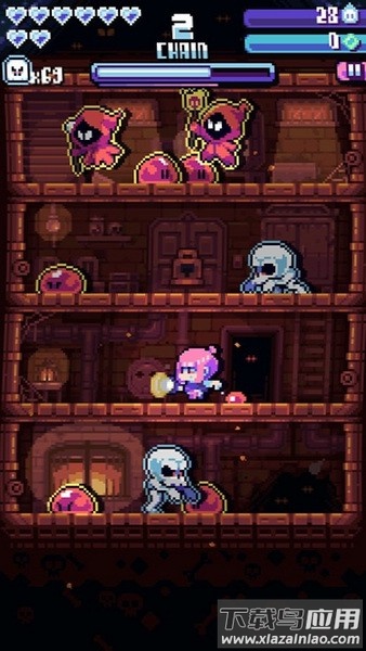 2、敌人种类多样,包括爬行的史莱姆、漂浮的幽灵以及强壮的骷髅战士。
