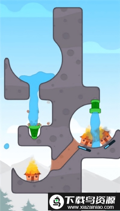 玩家通过手指划线挖掘土壤,形成水道引导远处池塘的水流扑灭火焰;每一关可挖掘的长度有所限制,必须合理利用每一寸路径。游戏看似简单,但随着关卡推进难度会逐渐增加,需要你全面开动思维才能找到正确路线。
