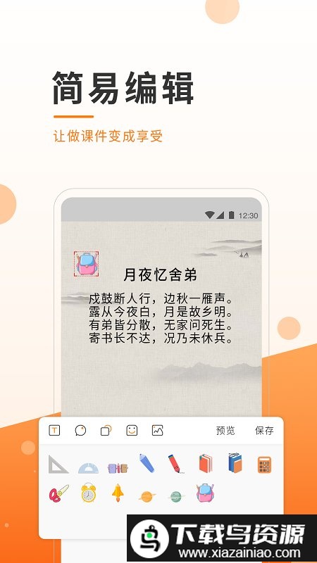 4.课件制作:提供大量模板与素材,采用简单实用的编辑方式协助教师制作课件;具备录屏讲解功能,为教师带来全新的教学支持,也为家长和学生创造不一样的课后学习体验。