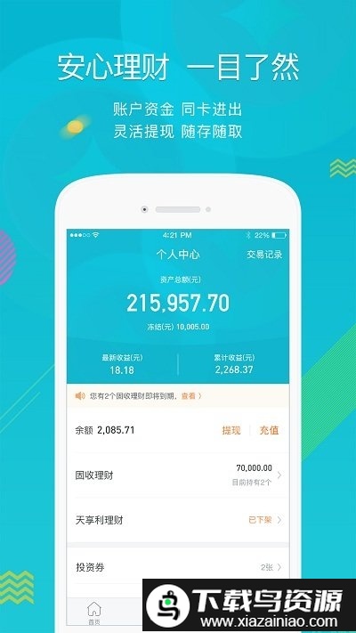合众国金app是一款专注于提供理财服务的手机软件。该应用功能全面,为用户准备了多种类型的理财产品,所有业务均获得政府批准,确保安全可靠。欢迎下载使用,喜欢的就在本站下载。