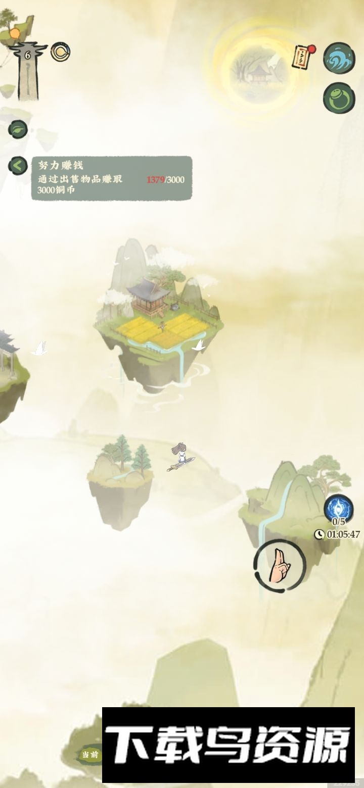 8.进入大世界需先激活飞仙台,同时解锁飞行功能;激活飞仙台要求开辟第二块土地,而开地需要5400金钱,因此前期金钱应优先用于任务需求和购买种子。