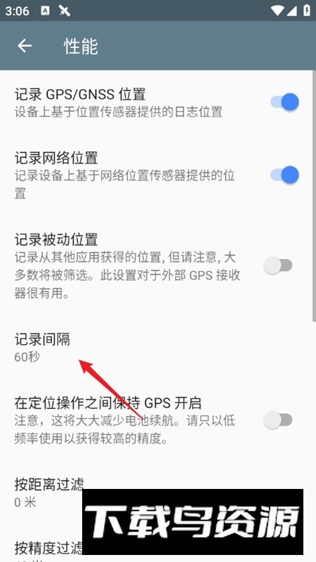 4.进入设置中的性能选项,可调整记录的时间间隔参数;