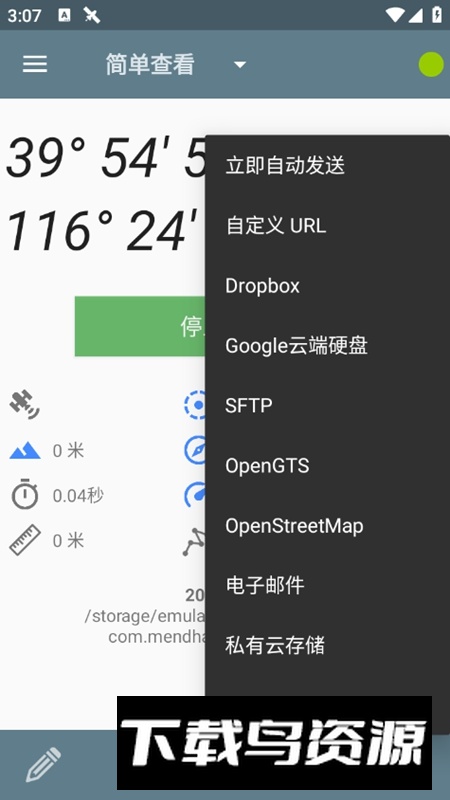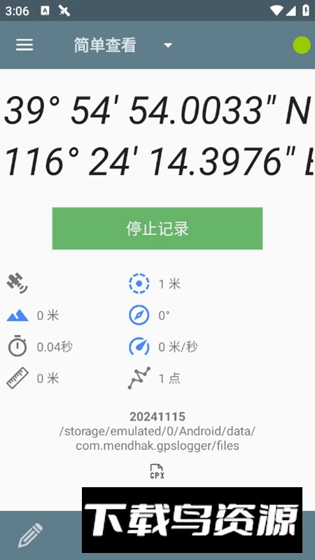 3.点击开始记录按钮,即可持续采集GPS轨迹数据;