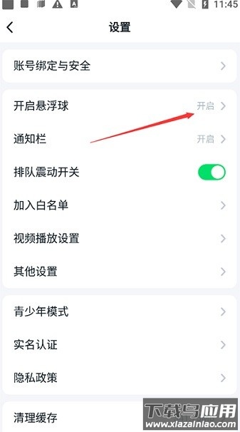 3、在设置中找到开启悬浮球的功能选项,点击开启即可。