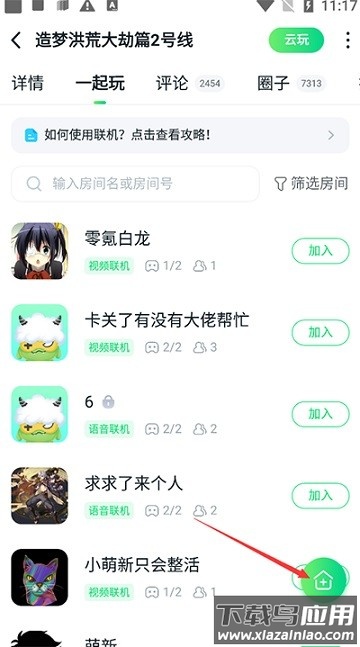3、你可以加入其他玩家创建的房间一起玩,也可以自己创建房间;点击小房子图标即可创建房间。