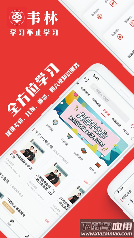 韦林APP由韦林文化开发,致力于服务国内众多高校学生的备考学习。它主要聚焦于考研公共课与专业课、大学英语四六级、雅思、托福等考试准备,同时也提供实用英语能力的提升课程,并配有精良的学习材料。
