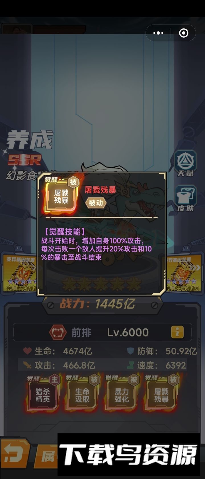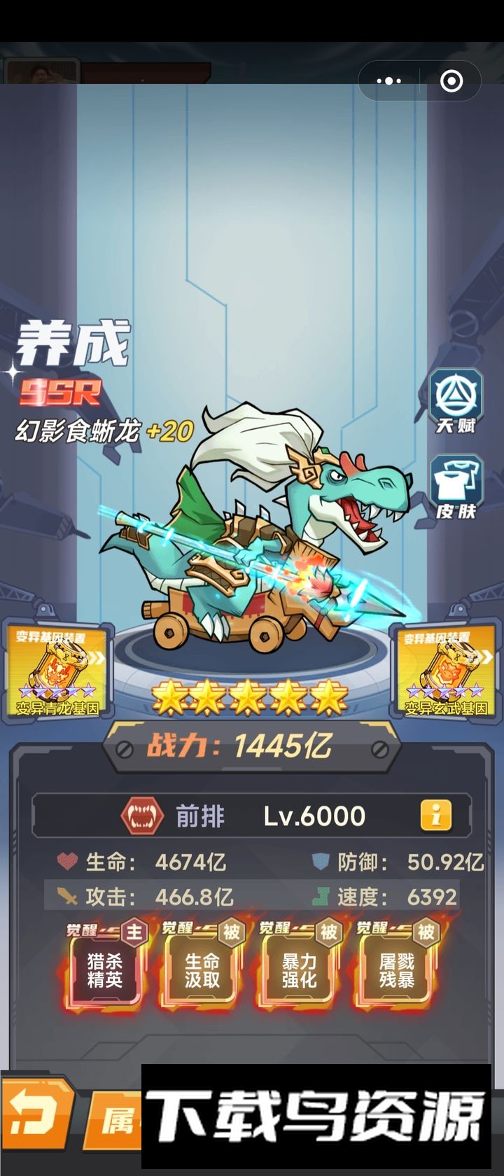 当前版本中最强的主力输出无疑是食蜥王龙,即幻影食蜥龙;它的技能每次释放后都能让下一次技能伤害提升1.2倍,具备极高的单体爆发力。其攻击会锁定对方攻击力最高的单位,成为针对敌方核心的致命武器;战斗开始时攻击力增加100%,每击败一名敌人还会再提升20%,此效果一直延续至战斗完结。