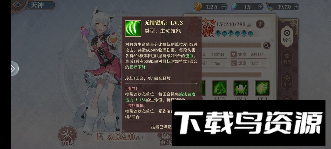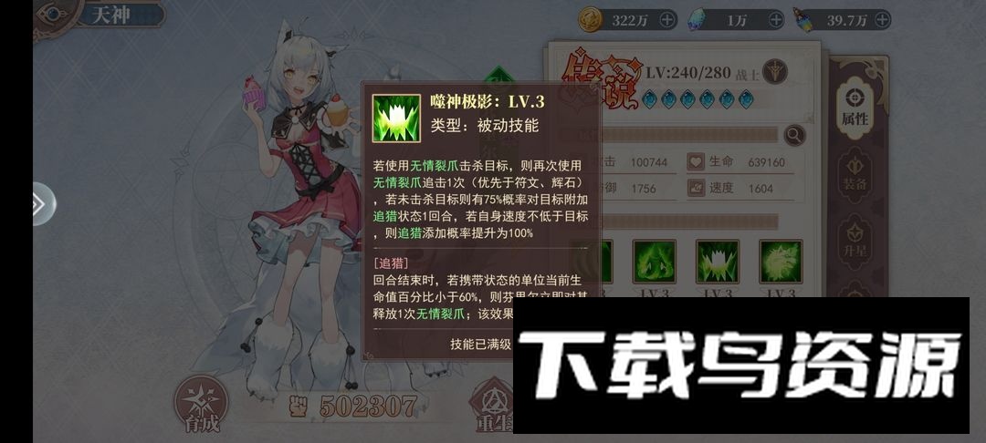 芬里尔技能冷却时间短,具备持续输出能力;其技能针对生命值最低单位,配合后排攻击角色可实现快速击杀;独特的追击机制在竞技与副本中均有出色表现,堪称平民阵容的优秀选择。