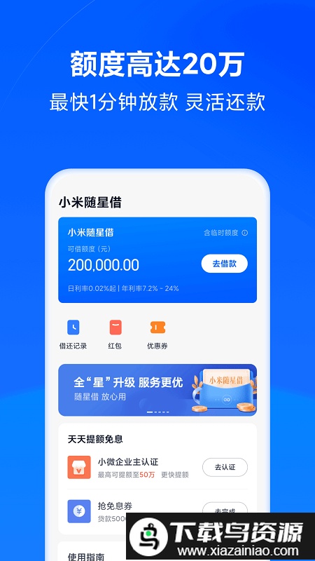 天星金融是小米旗下专为用户设计的移动金融工具,整合了信贷与投资管理功能。其贷款服务审批迅速、额度灵活且无需抵押,几分钟内即可完成申请;同时精选多款收益可观的理财产品,省去银行排队麻烦,实现财富稳健增长。