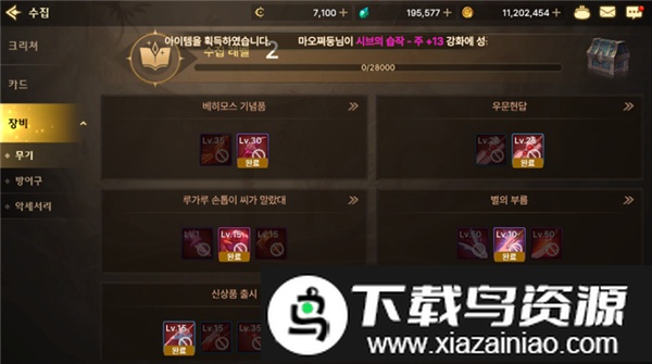 游戏内的武器系统沿用了端游的设定,分为武器、首饰与防具三大类别;装备品质由低到高依次为白色、蓝色、紫色、粉色以及史诗级。