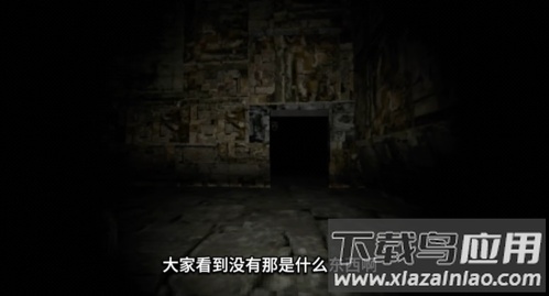 爬上楼梯后,能发现一座石屋,进入屋内看到铁链装置,按提示解开铁链,中间的黑色袋子会坠落;
