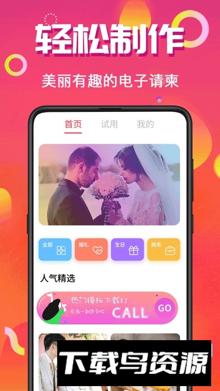 南京未来鸿网络科技有限公司推出了一款适用于安卓设备的免费电子请帖制作应用,这款软件能够帮助用户轻松创建各类活动的电子邀请函,包括婚礼庆典、生日聚会、乔迁新居以及宝宝满月等,其操作流程十分简便,体验流畅,如果您有需要,喜欢的不妨在本站下载。