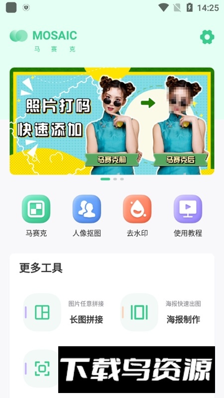 这款安卓平台的马赛克处理工具操作简便且功能全面,除了核心的马赛克编辑外,它还集成了人像抠图、水印去除、长图拼接以及海报设计等多种实用特性,软件内附有详细的使用指引,方便用户快速掌握,感兴趣的朋友可以免费下载体验!