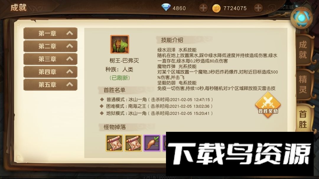 7.成就栏下的首胜界面可查看boss刷新状态;显示“已击杀”表示未刷新,绿色“刷新”字样出现则可前往挑战。