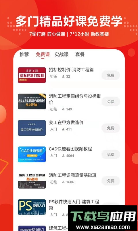 这是一款建筑在线学习应用程序,平台内课程资源丰富。它致力于为建筑行业新入行者提供全面课程与服务,内容涉及工程识图、施工技术、广联达软件建模、工程计量与计价、招投标流程以及BIM技术等多个方向;旨在助力学员不断提升专业能力,实现自我突破。
