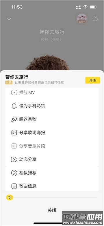 3. 在弹出菜单中选取分享音乐片段功能;