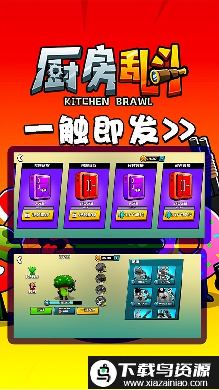 厨房乱斗是一款以蔬菜为主题的横版对战手游,游戏采用魔性可爱的画风,将各种蔬菜设计成独特的拟人角色,每个角色都拥有专属的战斗技能,你可以选择心仪的蔬菜伙伴,与好友展开一场激烈的2v2对决,看看谁操控的菜鸟战士更胜一筹,喜欢的就在本站下载。