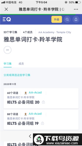 进入应用首页后,页面会展示您已加入的所有学习班级;点击进入目标班级,即可查看班级内创建的全部学习集,也就是单词卡片集合。