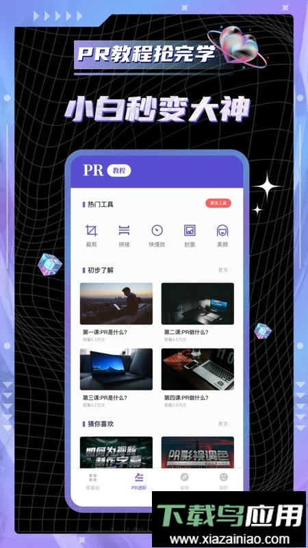 此应用旨在辅助初学者系统学习pr软件,内容包含精选的pr干货文章、入门指南、视频与音频教程;同时内置番茄时钟功能,以帮助用户提升学习和工作效率,助力大家精通pr技能,成长为剪辑高手。