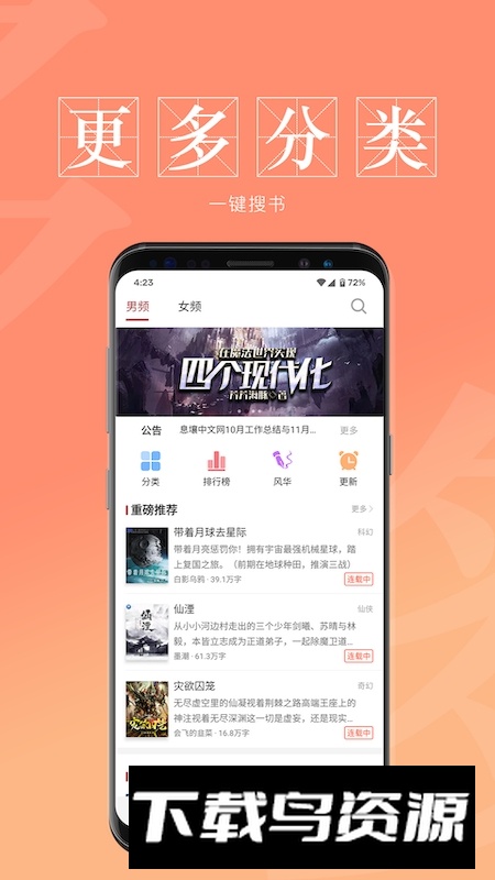 1、息壤阅读应用拥有大量正版免费小说资源,作品类型全面;该应用设有作者专栏板块,各类小说分类清晰,用户能通过人气榜单和总排行榜不断发掘优质书籍。