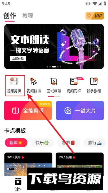 1、打开爱剪辑手机版,在编辑栏目中找到视频裁剪功能;